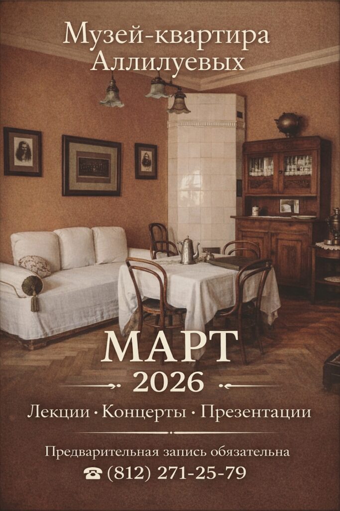 На все мероприятия обязательна предварительная запись — по телефону (812)271-25-79 или в сообщениях группы Музей-квартира Аллилуевых